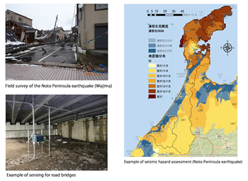 The main research theme is to strengthen the resilience of entire regions, including building structures and social infrastructure. While social infrastructure is ageing and depopulation is increasing as a social problem, there are concerns about the intensification of weather-related disasters due to global warming, and the possibility of large-scale earthquakes, such as the 2024 Noto Peninsula earthquake, is also increasing. In recent years, the mechanisms of disaster occurrence have become more complex and diverse, and the likelihood of disasters occurring that cannot be dealt with by conventional rules of thumb has increased. Our laboratory is actively engaged in research to understand the realities of the site using sensing technologies that reveal natural external forces such as seismic motions and wind speeds, as well as the strength characteristics of structures and ground. We combine the collected data with the latest analysis techniques and develop technologies that enable simulation, and study disaster prevention and mitigation measures in areas with high disaster risk.